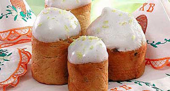 Остывший кулич оформите взбитым яичным белком с сахаром.